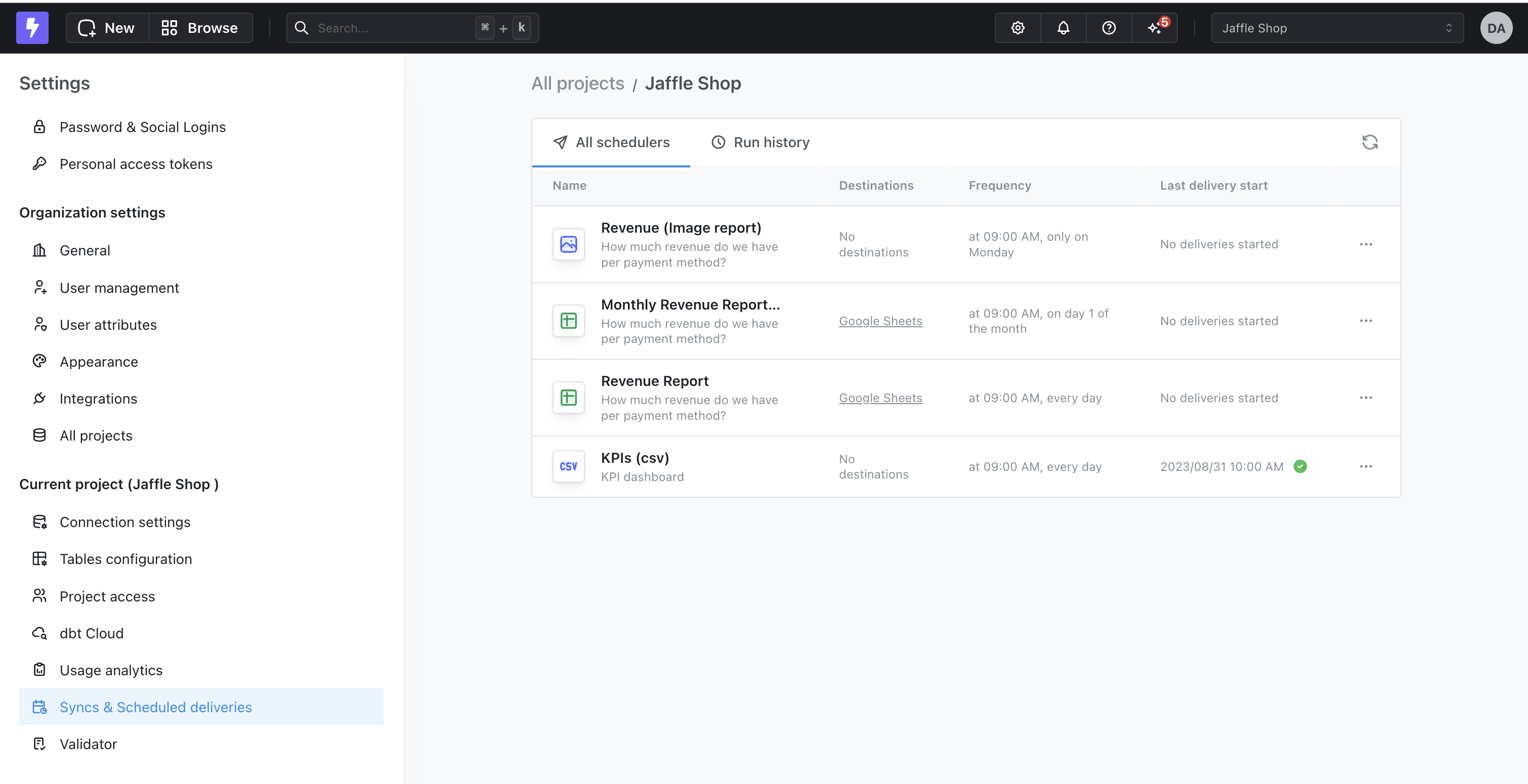 You can set up as many syncs as you like, and if you make any changes to the content, Lightdash will update the syncs the next time they’re sent.