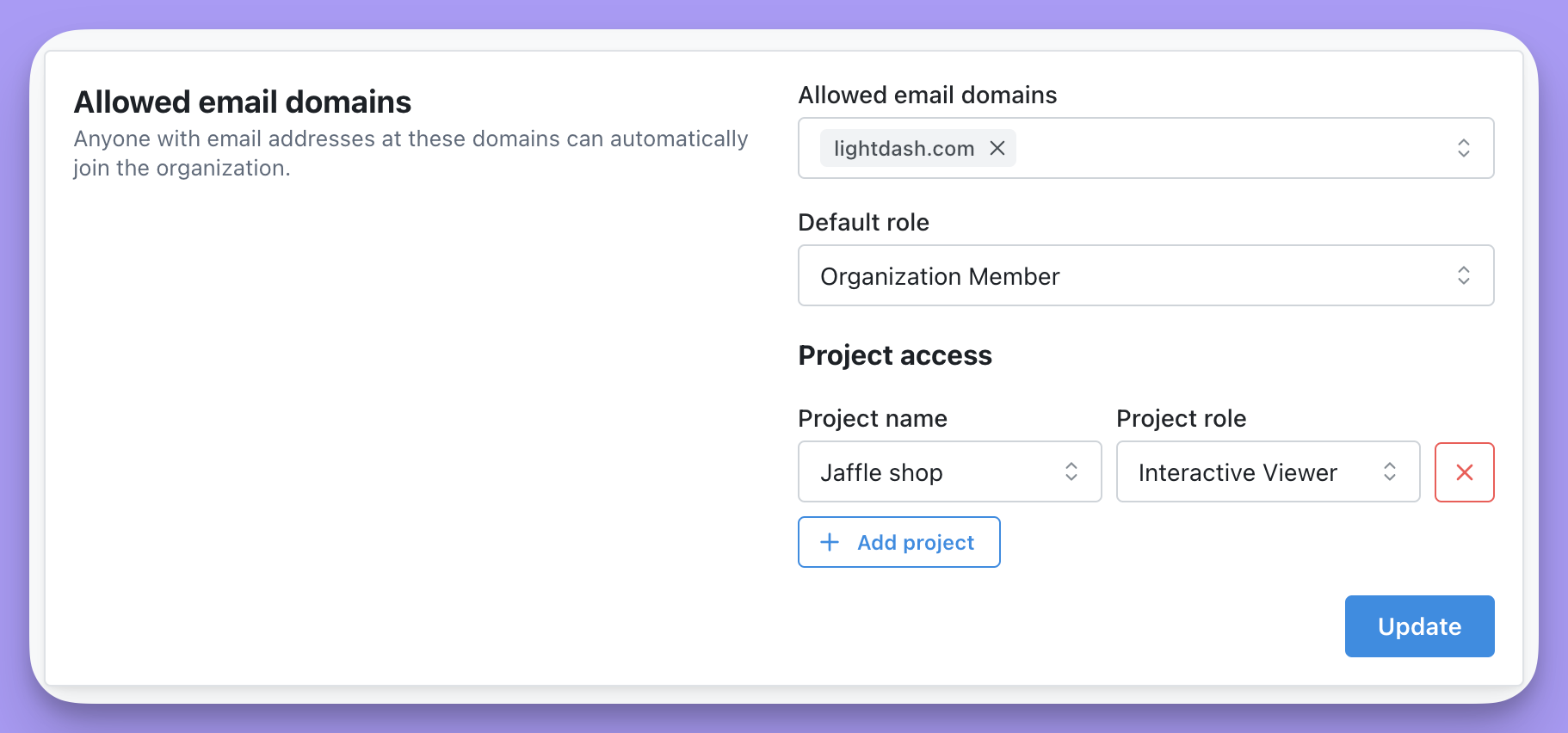 Once you’ve selected the default roles for your allowed email domains, make sure to click Update to save your changes.